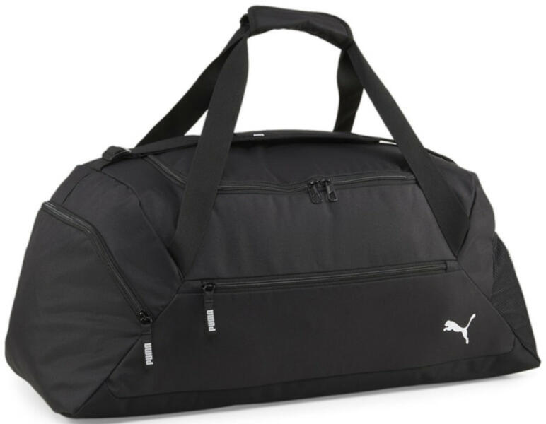 Puma teamGOAL M közepes sporttáska. Kétirányú cipzárral nyitható tágas fő rekesz. Belseje egyterű. Elején cipzáras zseb. Egyik oldalán cipzáras zseb, másikon hálós rekesz. Tetején két fix kézbefogó fogantyú, tépőzáras markolat. Hosszú vállpántja állítható kb. 60-120 cm. Kézben és vállon kényelmesen hordható. Külső méretek (Szélesség x Magasság x Mélység)