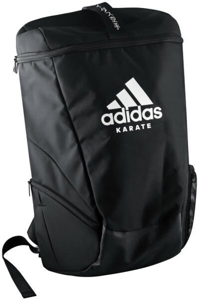 Jellemzők : Az adidas edző hátizsák karatéhoz és egyéb harcművészetekhez készült, elég nagy a felszerelés szállításához. A vállpántok állíthatóak. Oldalsó rekesz cipzárral és hálós zsebbel, Erős műanyag fogantyúkkal. Műszaki információk : Anyaga : poliészter Szín : fekete-fehér Adidas és karate logó nyomtatva az elején. Méretek : S, M, L S: 45 x 28 x 17, kb.