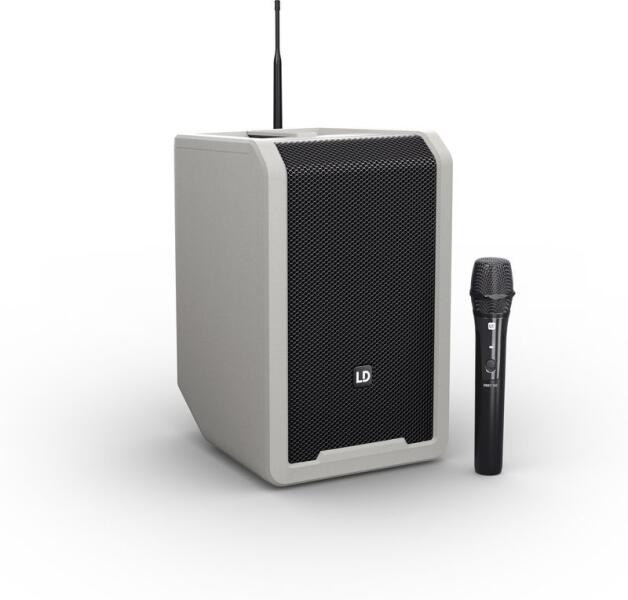 8";-os hordozható akkumulátoros PA rendszer keverővel, Bluetooth, vezeték nélküli kézi mikrofon, 584 - 608 MHz, szürke Hordozható, 8";-os aktív kétutas szélessávú hangfal Beépített 5-csatornás keverő 3-sávos EQ-val, zengetővel és visszhanggal 1 x vezetéknélküli kézi mikrofon AA elemekkel Akkumulátor üzemidő akár 11 óra (ECO üzemmód), 3,5 óra (max. hangerő) Bluetoo