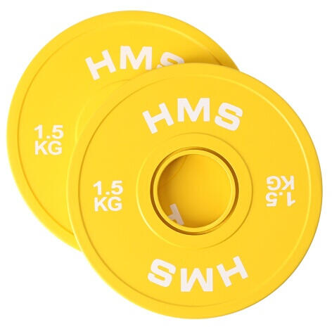 A HMS Olympic lökhárítólemez acélból készült, és kiváló minőségű színes gumival borított. Fő előnyei: tökéletes öntés, esztétikus kivitel, különleges profil. A tárcsa a legjobb anyagokból készült, a vastag gumi hatékonyan elnyeli az ütéseket a talajjal való ütközéskor. A HMS Bumper Plate lemezek a súlytól függően 75-96 pontot érnek el a Shore-skálán. Ez a