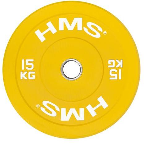 A színes HMS Bumper súlytárcsa alkalmas súlyemeléshez és crossfit edzéshez. Fő jellemzője a tartósság, nagy magasságból történő ledobása során sem sérül meg. A súlytárcsát 50 mm átmérőjű olimpiai tengelyekhez terveztük, a verseny paraméterei szerint színeztük. Paraméterek: - nyílás átmérője: 51 mm - anyaga: színes gumival bevont vas - a belső, köztes betét