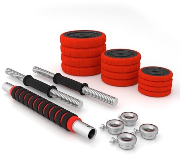 A súlyzók kiváló minőségű, öntöttvasból készültek, ami garantálja a hosszú élettartamot. A súlytárcsákat gumis réteg borítja, amely megvédi a padlót és a tárcsákat a sérülésektől, gondatlan tárolás esetén. A súlyzókat a súly elmozdulása ellen csavarzárak biztosítják, amelyeket továbbá csavarral is rögzítenek. A készlet 2 rövid, ergonomikus markolattal e