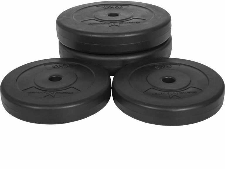 Esztétikus olimpiai tárcsák, a gumibevonat révén csendesebb edzés lehetőségét biztosítják.