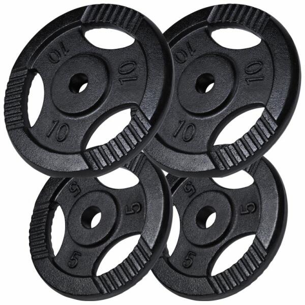 A műanyag burkolat lekerekített, ezért különösen kíméletes a padlóhoz. A fogantyúk mélyedéseinek köszönhetően ergonomikusan megfoghatja és edzés közben is használhatja. Ezen kívül a tárcsa praktikus, 31 mm átmérőjű furattal rendelkezik , amely lehetővé teszi extra súlyok használatát a súlyzókon vagy a 30 mm átmérőjű súlyzókon. Főleg a súlyozott "felhúzásn