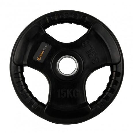 A Sportmann gumírozott súlytárcsa minőségi, magas kopásálló tulajdonsággal rendelkező műanyagból készült, és csúszás-gátló, ergonomikus markolatokkal rendelkezik. A súlytárcsa ajánlott azoknak akik a hát-, mell- meg kar-izomzatot szeretnék fejleszteni. Használható sport termekben vagy akár a saját otthona kényelmében. A Sportmann gumírozott súlytárcsa súlya 15 kg,
