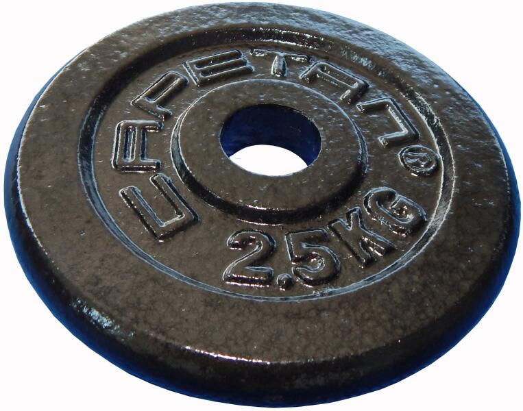 Capetan® 2,5kg acél súlytárcsa kalapácslakk felülettel 31mm lukátmérovel: Az ár 1db-ra vonatkozik. A súlyzótárcsa felületének kialakítása sorja mentes, a kalapácslakk festés esztétikus felületet biztosít. A 30mm átméroju súlyzórudakhoz való kialakítású.