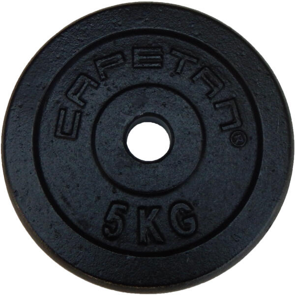 Capetan® 5Kg 31mm átm, Acél súlytárcsa fekete selyemfényu festék bevonattal: