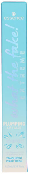 Transparent - ice ice baby! - az essence what the fake! ajakkitöltő extreme plumping lip filler, borsmenta olajjal, hialuronsavval és e-vitaminnal dúsítva láthatóan feltölti az ajkakat. Az átlátszó, csillogó felület fényes megjelenést kölcsönöz, és még teltebbé teszi az ajkakat.