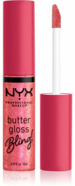 NYX Professional Makeup Butter Gloss Bling, 8 ml, Szájfény nőknek, Sima ajkak, mint az üveg és visszaverik a fényt, mint a tükör? Valóra váltja ezt az álmát a csodás NYX Professional Makeup Butter Gloss Bling szájfény. Magasfényű réteggel vonja be az ajkakat, kisimítja és kiegyenlíti a felületüket, így tökéletesen elrejti a ráncokat és vonalakat, ráadásul hosszan tart