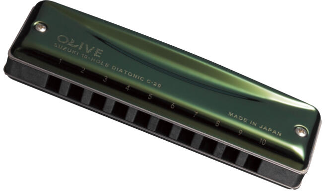 A legújabb fejlesztésű és kétségtelenül az eddig legszebb egysoros, 10 hanglyukú, diatonikus szájharmonika. Gyönyörű, speciálisan kezelt, olívazöld színű fedőlemezekkel, egyedi kompozit ...