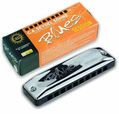 C. A. SEYDEL SÖHNE BLUES SESSION HD-10201-HG Szájharmonika Standard Magas G Teljesen egyedi formájú, lekerekített, rendkívül kényelmes, lágyabb tónusú, professzionális diatonikus/blues szájharmonika. Fekete műanyag betéttel, krómozott, lekerekített fedőlappal és magas minőségű rézlamellákkal szerelve. Légtartása kiváló. Rendelhető hangnemek dúr hangolásban: C, Db, D,