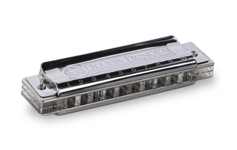 B hangolású diatonikus blues szájharmonika, fa korpusz Fa korpusz, fém ház 20 réz lamella, 0,9 mm Szélesség: 10,5 cm Stabil műanyag tok