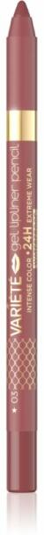 Eveline Cosmetics Variété, 9 ml, Kontúr ceruzák szájra nőknek, A kiváló minőségű Eveline Cosmetics Variété ajakceruza meggátolja a rúzs kellemetlen elmosódását és segítségével tökéletes ajkakat formálhat. Tulajdonságok: egyesíti a kontúrceruza és a rúzs funkcióját intenzív árnyalat tökéletesen keretezi és emeli ki az ajkakat érzékien teltté teszi az ajkakat