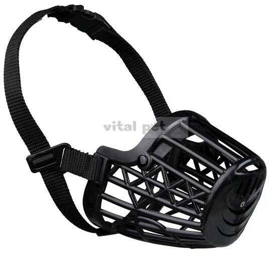 Szájkosár kutyák részére, amely puha műanyagból készült bőr szalaggal. Alkalmas: Szibériai husky, doberman számára Méretei:Orr kerület: 22 cmA - 7 cmB - 11 cmC - 4,5 cmD - 10 cm