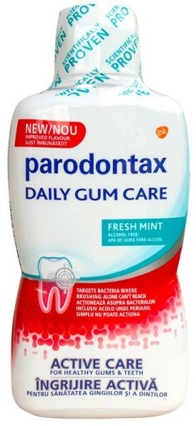 A Parodontax Daily Gum Care szájvízet kifejezetten a fogíny egészségének megóvása érdekében fejlesztettek ki. Sok szájvíz csupán a leheletet frissíti, mások esetleg erősítik a fogakat, viszont ha egy olyan szájvizet használ, amely a fogíny védelmét is szolgálja, az segíthet a teljeskörű szájápolásban. Tulajdonságok: - Bizonyítottan segít megőrizni a fogíny egészs