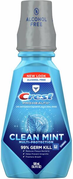 A Crest Pro-Health CLEAN MINT Multi-Protection szájvíz elpusztítja a szájüregben lévő baktériumok akár 99%-át, és megakadályozza a szaporodásukat. Véd a fogínygyulladás és a fogszuvasodás ellen. Napi kétszeri használat esetén 24 órás védelmet biztosít. Alkalmas az ínygyulladás kezdeti szakaszában is. Meggátolja a gyulladást és csökkenti a fogínyvérzést. Hatóanya