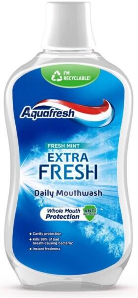 Az Aquafresh Extra Fresh a tökéletes szájvíz az egész család számára. Ideális felnőttek és 6 éves és idősebb gyermekek számára. Az Aquafresh szájvíz nem csak a leheletét frissíti fel, de a lepedék ellen is küzd, és segít megőrizni az íny és a fogak egészségét. Véd az ínybetegségek ellen, és a nehezen hozzáférhető területeket is megtisztítja. A rossz leheletet