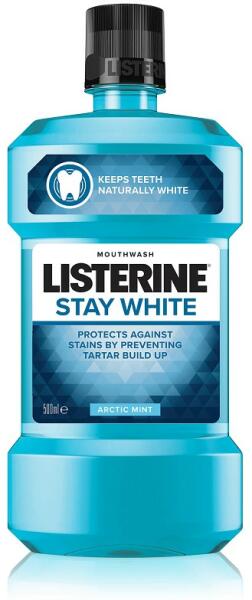 Hamarosan új névvel: Listerine Total Care Stay White! Szájvíz a FEHÉREBB fogakért! Napi kétszeri használat mellett a Listerine Stay White szájvíz bizonyítottan csökkenti a fogkő kialakulását, így segít megelőzni a fogak elszíneződését, megőrizni azok fehérségét, tisztaságát. Használatával több lepedék távolítható el, mint csupán fogmosással. Megelőzi és csök