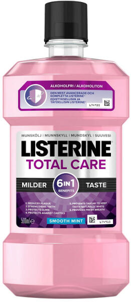 Listerine Total Care Teeth Protection, 500 ml, Szájvizek és szájspray-k unisex, A minőségi Listerine Total Care Clean Mint szájvíz nem csak felfrissít leheletét, de egyben a foglepedék ellen is hat, és segít megőrizni a fogíny, valamint a fogak egészségét. Tulajdonságok: küzd a fogszuvasodás ellen foglepedék elleni védelem megöli a baktériumokat erősíti a fogzománcot meg