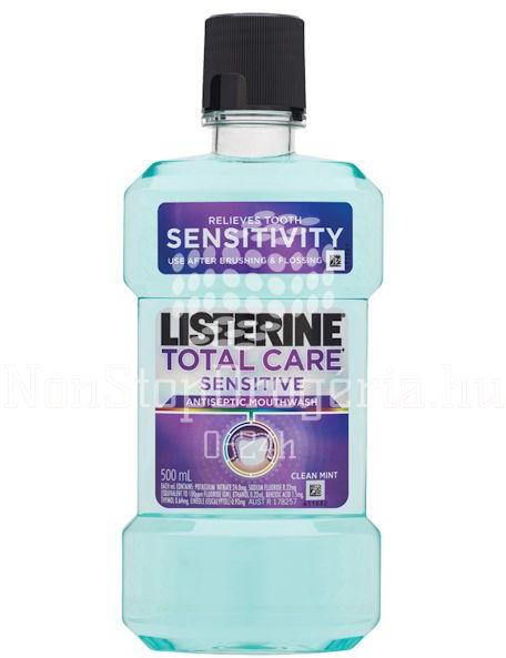 TermékleírásTermék információk Napi kétszeri használat mellett a Listerine® Total Care Sensitive szájvíz bizonyítottan a teljes szájüreget tisztítja és szembeszáll az érzékenységet kiváltó tényezőkkel: Védelmet alakít ki az éles, hirtelen jelentkező érzékenység érzettel szemben. Erősíti a fogzománcot még a nehezen elérhető helyeken is. Segít megőrizni a fog