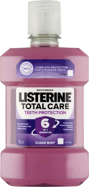 Listerine Total Care Teeth Protection, 1000 ml, Szájvizek és szájspray-k unisex, A minőségi Listerine Total Care Clean Mint szájvíz nem csak felfrissít leheletét, de egyben a foglepedék ellen is hat, és segít megőrizni a fogíny, valamint a fogak egészségét. Tulajdonságok: küzd a fogszuvasodás ellen foglepedék elleni védelem megöli a baktériumokat erősíti a fogzománcot me