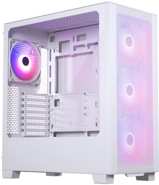 Midi-torony ATX, Micro-ATX és Mini-ITX alaplapokhoz Edzett üvegből készült elülső és oldalsó panoráma panelekkel Grafikus kártyák 345 mm-ig, CPU-hűtők 170 mm-ig 120 mm-es ventilátor előre telepített ARGB LED világítással Akár öt ventilátor telepítését is támogatja Hely egy 240 mm-es radiátor számára felül és 120 mm-es radiátor számára hátul I/O panel 2x USB 2.0