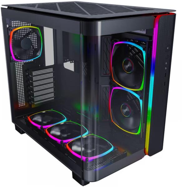 SZÍN: Fekete, FÉRŐHELY: 2x 2.5"/3,5" Combo, 4x 2.5", ELŐLAP: 4x USB3.2 Gen1, 1x USB3.2 Gen2 Type-C, 1x 3.5mm jack csatlakozó, ARGB világítás Tulajdonságok 420 mm-es kettős radiátor támogatás Fém GPU-tartó 60 W-os gyorstöltés Prémium anyagok Edzett oldalsó üvegpanel ARGB világítás Műszaki adatok Alaplap támogatás: EATX (12"x10.9"), ATX, Mikro-ATX, Mini ITX Férőhelyek: 4x