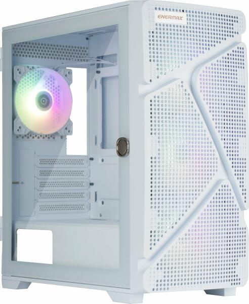 Design: Type: PC Cable management: Yes Form factor: Midi Tower Number of 2.5" bays: 2 Illumination: ARGB Product colour: White Maximum CPU cooler height: 18 cm Number of expansion slots: 7 Supported motherboard form factors: micro ATX, Mini-ITX On/off button: Yes Maximum graphics card length: 43 cm Tempered glass panel(s): Yes Number of 3.5" bays: 3 Side window: Yes Weight & dimensions: Height
