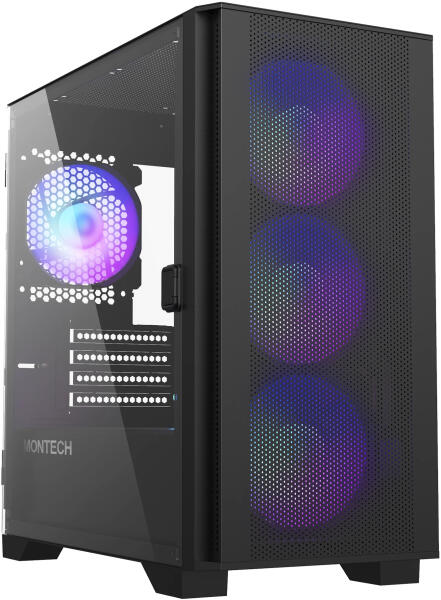 A Montech AIR 903 MAX midi toronnyal nem kell kompromisszumot kötnöd, ha játékgéped esztétikájáról és hűtéséről van szó. Összesen négy előre beszerelt 140 mm-es ventilátor gondoskodik a kiváló légáramlásról. Az oldalsó panel edzett üvegből készült, és kiváló körkörös rálátást biztosít a beszerelt komponensekre. Az előlap a lehető legjobb légáramlást biz