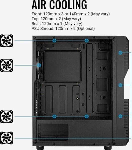 ATX formátumú Midi-torony kialakítású számítógépház RGB látványelemekkel. - Akril üveg oldalpanel - Kábelrendező - Folyadékhűtéses rendszerek támogatása - Porszűrő - 7 db bővítőhely