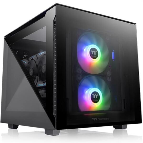 . . Thermaltake Divider 200 TG A Divider 200 TG egy Micro-ATX ház, amely egy előre telepített 200 mm-es első ventilátorral, egy 120 mm-es szabványos hátsó ventilátorral, három tartós 3 mm-es edzett üvegablakkal rendelkezik elöl, felül és a bal oldalon. A Thermaltake egy vadonatúj házszériát tervezett, amely a Divider sorozatban a nyitott keret stílusú elemek és a testreszabha