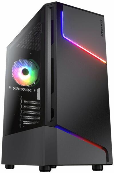COUGAR Gaming MX360 RGB. Elrendezés: Midi Tower, Modell: PC, Termék színe: Fekete. Első ventilátorok támogatott átmérője: 120 140 mm, Telepített hátsó ventilátorok: 1x 120 mm, Hátsó ventilátorok támogatott átmérője: 120 mm. Támogatott merevlemez-méretek: 2,5, 3,5", SSD meghajtórekesz mérete: 2,5" Termékszélesség: 210 mm, Termékmélység: 378 mm, Termék magasság: 460 m