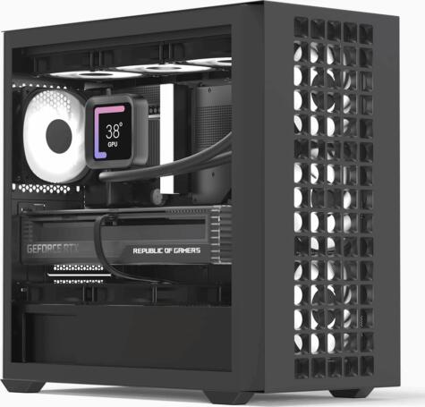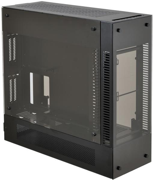 A fekete PC-O12WX a Lian-Li nemes midi torony, amely a csiszolt alumíniumot edzett üvegelemekkel kombinálja. A két kamrára osztott ATX ház belseje lehetővé teszi, hogy a bal kamrába akár négy grafikus kártyát is be lehessen szerelni a riser kártyakábelek segítségével, az alaplap és a CPU pedig a jobb kamrába kerüljön. Az eredetileg kialakított belső tér az edzett üvegből