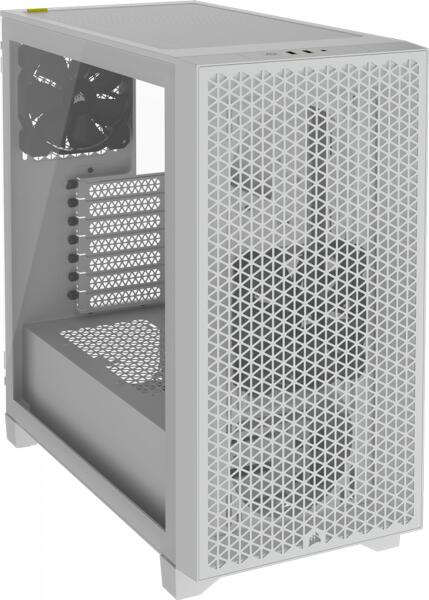 Corsair mid-tower 3000D tempered glass case, white The white ATX mid-tower CORSAIR 3000D AIRFLOW provides intensive air circulation and excellent cooling. A steel front panel and two pre-installed CORSAIR SP120 ELITE fans ensure optimal airflow through the case, while a tempered glass side panel allows for easy viewing of components. Up to 8 120mm fans or up to 4 140mm fans can be accommodated in