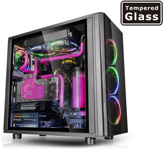 alsó táp, 2,5" hely: 2db, 3,5" belső hely: 2db, bővítőhely: 7db, USB-C: 1db, USB3.0: 2db, 140mm-es hűtő: 1db, világítás: ARGB, RGB-sync, Mini-ITX, mATX, ATX, E-ATX A View 270 TG ARGB Mid Tower Chassis egy ATX tok, amely az elképesztő látványhoz készült, és amely edzett üvegből készült elülső és bal oldali panellel rendelkezik, valamint egy előre telepített CT140 ARGB Syn