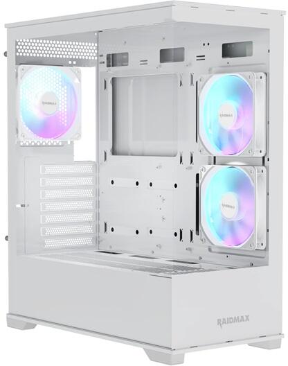 A Raidmax i801 egy modern és stílusos mid-tower számítógépház, amelyet kifejezetten a játékosok és PC-építők igényeire terveztek. Az i801 ház két edzett üveg oldalpanelekkel rendelkezik, amelyek lehetővé teszik a belső komponensek látványos megjelenítését. A ház három előre telepített ARGB ventilátorral rendelkezik: kettő az alaplapi tálcán és egy a hátsó része