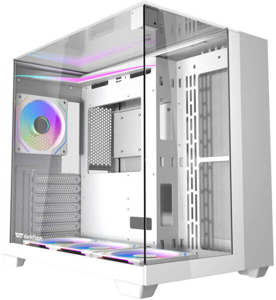 Darkflash DQX90 számítógépház (fehér) Darkflash DQX90 számítógépház (fehér) A Darkflash DQX90 egy ATX szabványú számítógépház, amely üveg oldalsó és elülső panelekkel rendelkezik, amelyek feltárják a számítógép belsejét, és lehetővé teszik az ARGB háttérvilágítás használatát az összes alkatrész kiemelésére. Az átgondolt szellőzőrendszernek köszönhe