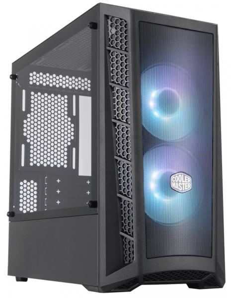 . . Finoman rácsozott előlap A Cooler Master előlapján található finom rácsos dizájn bizonyítottan hatékony légáramlást biztosít, miközben kiszűri a port. . . Rácsos szellőzők Az elülső panel mindkét oldalán nagy rácsos beömlőnyílások találhatók, amelyek jelentős légáramlást biztosítanak a rendszer számára. . . Két ARGB ventilátor Két 120mm-es ARGB ventilát