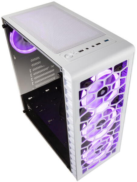 . . A TK4 RGB egy kompakt midi ATX ház, amely külső megjelenésével és belső értékeivel is lenyűgöz. Az előlap tökéletesen illeszkedik a fekete burkolat egyébként visszafogott kialakításához, és kilátást nyújt a három 120 mm-es RGB LED-ventilátorra, amelyek látványos fényhatásokat nyújtanak. Két USB 3.0 porttal ellátott I / O panel és edzett üveg oldallap egészít