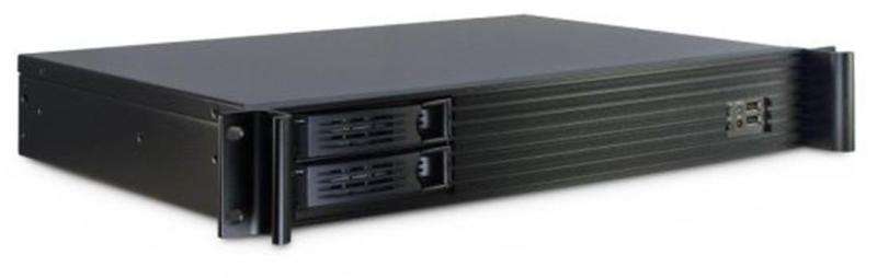 The special design in 1.5U enables you to run two external drives (2.5" or 3.5") in Hot-Swap mode on an ITX-Mainboard base. The interior offers the option to mount two additional 2.5" drives and more height for CPU-cooler than a regular 1U case. Two serial 60mm fans behind the front panel ensure a reliable cooling. It also offers two USB front connectors in the front, next to the controls.