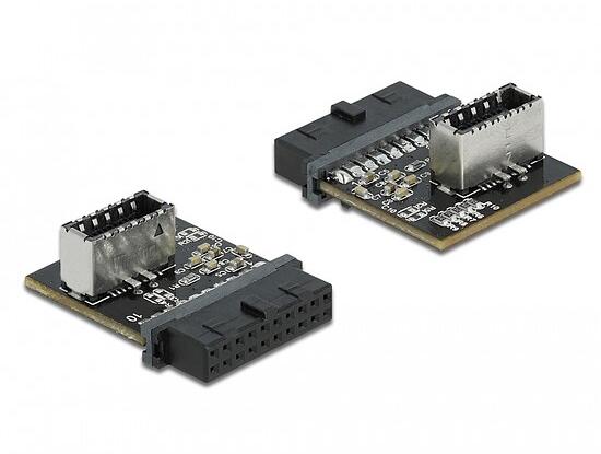 Ez a Delock átalakító a belső, tűfejes USB apát alakítja át belső USB A kulcsos anyává. Különböző kábelek csatlakoztathatók az átalakítóhoz, hogy akár egy USB Type-C vagy két A-típusos USB csatlakozó felületet kapjunk. Aktív átalakító A beépített chip-készlet miatt a USB Type-C funkciók, mint például csatorna beállítás (CC1 és CC2) alkalmazható. Műszaki ada