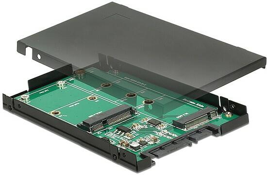 A Delock átalakító lehetővé teszi, hogy egy 2280, 2260, 2242 és 2230 formátumú M. 2 SATA SSD-t, illetve egy teljes méretű vagy fél méretű mSATA-modult csatlakoztasson. Ha mindkét nyílás foglalt, kizárólag az M. 2 SSD használható. Az átalakítót egy 22 tűs SATA-csatolón keresztül telepíthető a rendszerbe. Műszaki adatok: Csatlakozó: 1 x 22 érintkezős SATA 6 Gb/s dugó