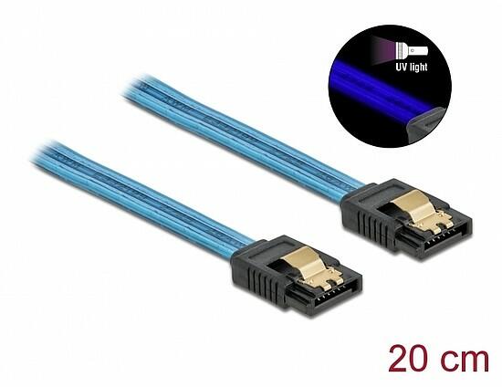 Ez a Delock SATA-kábel különféle SATA-eszközök, például merevlemezek, vezérlőkártyák vagy Flash-memóriák belső csatlakoztatását teszi lehetővé. A csatlakozókon lévő fémkapcsoknak köszönhetően a kábel megbízhatóan rögzíthető. UV fényhatással A kábel világít UV fény hatására, például UV fénycső alatt, és ezért könnyen megtalálható bármilyen módosít