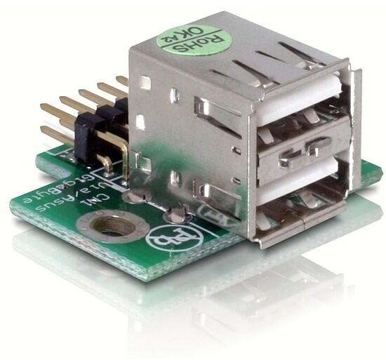Ez a delock adapter kapcsolódhat egy az alaplapon lévő szabad USB Pinheader-male csatlakozóhoz ez által a számítógép bővíthető lesz 2db belső USB porttal. Ezáltal használhatunk további USB eszközöket. Mindkét female port fölfele vezet, pin1 felülethez képest, az alaplapon lévő csatlakozónak köszönhetően. Műszaki leírás 2x USB2.0-A female közvetlenül az alaplapból