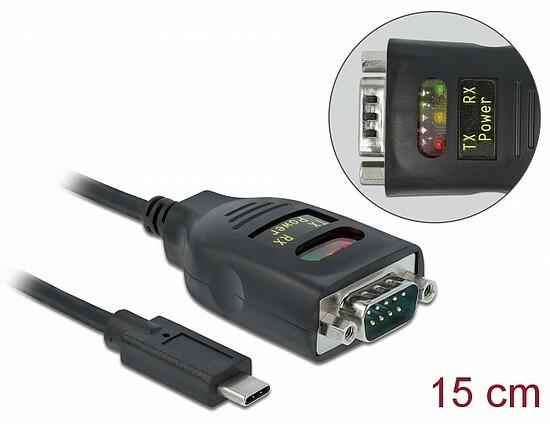 Ez a Delock által gyártott USB Type-C - soros adapter az RS-232-es portot hosszabbítja meg méterekkel, POS rendszerekhez, nyomtatókhoz, modemekhez, IoT eszközökhöz stb. Az RS-232 porton lévő három LED jelzi az átadó-, a vevő állapotot valamint az USB töltöttséget. Műszaki adatok: Csatlakozó: 1 x USB Type-C dugó 1 x soros RS-232 DB9 dugó Soros csatlakozó menetes rögzítőkke
