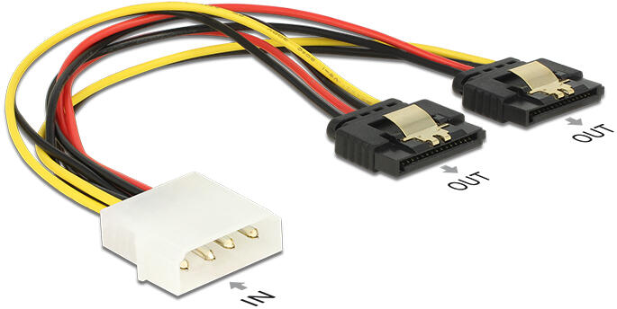 Leírás Ez a Delock kábel lehetővé teszi, hogy a tápegység egy szabad, 4 tűs Molex-csatlakozóján keresztül tápfeszültséggel lásson el két olyan eszközt, amelyek 15 tűs SATA-csatlakozóhüvellyel rendelkeznek. A SATA-aljzatokon lévő fémkapcsoknak köszönhetően a kábel stabilan a helyére illeszhető. Műszaki adatokCsatlakozó:1 x Molex 4 érintkezős dugó >2 x SATA 15 é