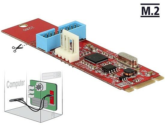 Ez a Delock átalakító egy USB 3.0-s csatlakozósorral bővíti ki a rendszerét. Az átalakító 80 mm hosszú, és az előre megadott töréspontnál 60 mm-re rövidíthető. Műszaki adatok: Csatlakozó: 1 x 59 tűs M. 2 B+M-kulcs dugó > 1 x 19 tűs, USB 3.0-s csatlakozósorral ellátott csatlakozódugó 1 x Floppy 4 érintkezős tápcsatlakozó Lapkakészlet: Renesas Csatolófelület: PC