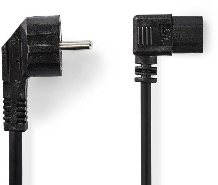 Földelt csatlakozóval ellátott 220V-os tápkábel hálózatról üzemelő eszközök, például számítógépek fali aljzatba történő csatlakoztatására használható. A végén L csatlakozóval.