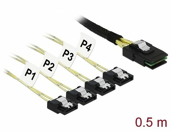 Ez a Delock SAS kábel belső SAS eszközök csatlakoztatására hasznáható, pl. egy vezérlő Mini SAS csatlakozóval 4 HDD-hez SATA portokkal. Műszaki adatok: Csatlakozó: host: 1 x Mini SAS SFF-8087 dugó eszköz: 4 x SATA 7 érintkezős hüvely Serial Attached SCSI (SAS) specifikáció Hosszúság (a csatlakozóval együtt): kb. 0,5 m Rendszerkövetelmények Szabad Mini SAS-csatoló A csoma