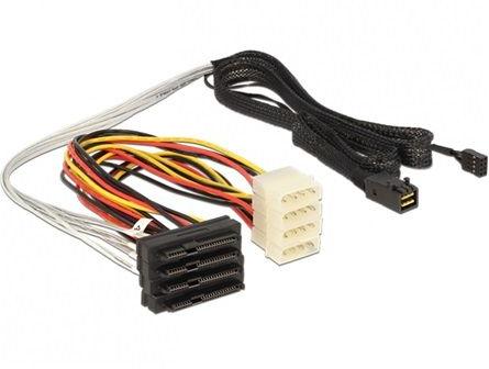 Ez a Delock SAS kábel belső SAS eszközök csatlakoztatására hasznáható, pl. egy vezérlő Mini SAS HD csatlakozóval 4 HDD-hez SAS portokkal. Műszaki adatok Csatlakozó: host: 1 x Mini SAS HD SFF-8643 dugó eszköz: 4 x SAS SFF-8482 hüvely 2 x 4 tűs Molex-tápcsatlakozó 1 x 8 tűs, oldalsávos... Leírás Ez a Delock SAS kábel belső SAS eszközök csatlakoztatására hasznáható, pl.